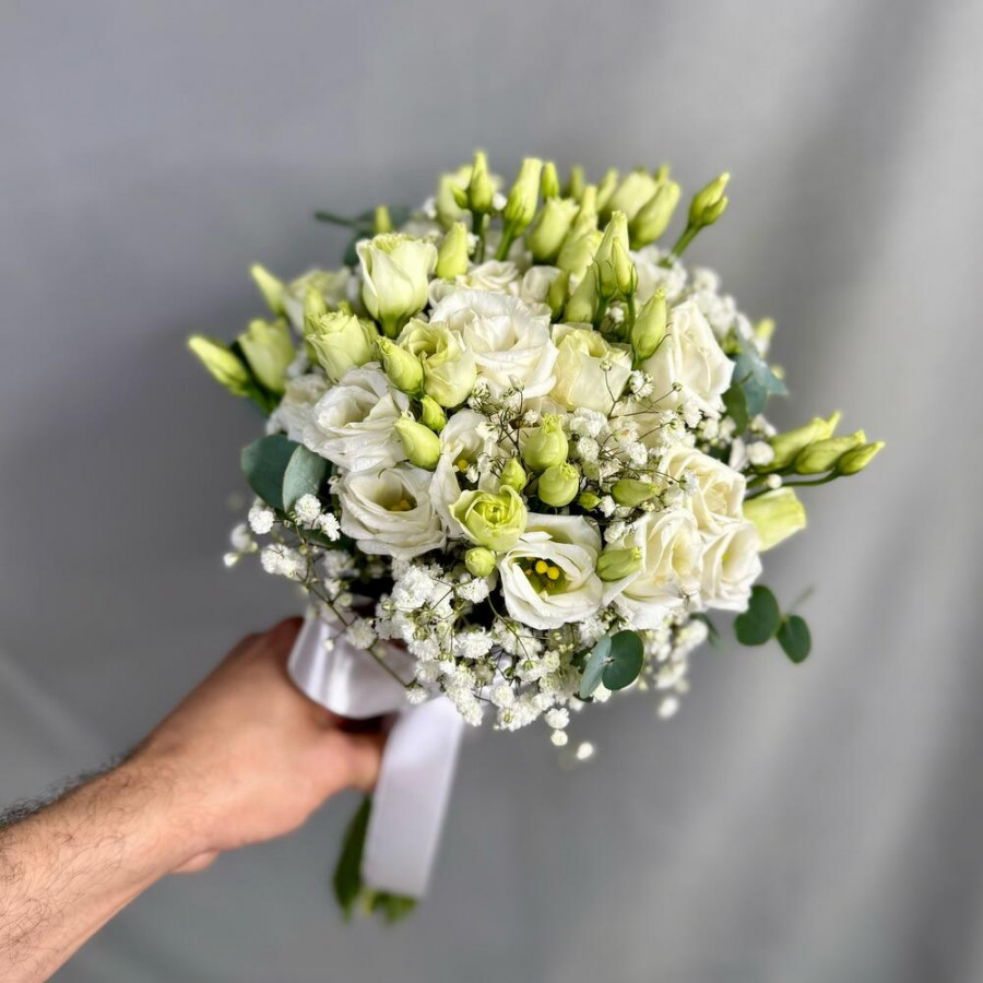 Букет невесты из эустом и гипсофилы в Выксе